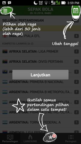 - Melihat skor langsung sepak bola, tenis, futsal dan 30 jenis olah raga lainnya