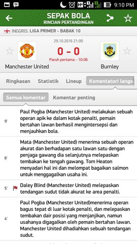 - Statistik Komprehensif mencakup line up, pencetak gol, kartu dan pergantian pemain