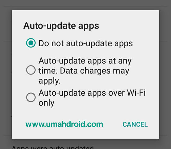 Ini bisa menjadi jilid kedua dari langkah nomor 5 diatas. Opsi lain yang bisa kita gunakan selain mematikan fitur auto update adalah Auto-update apps over Wi-fi only.
