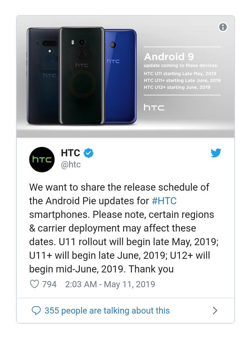 Itu terjadi setelah U11 Life menjadi ponsel pertama yang menikmati peremajaan ke sistem operasi ponsel tersebut.