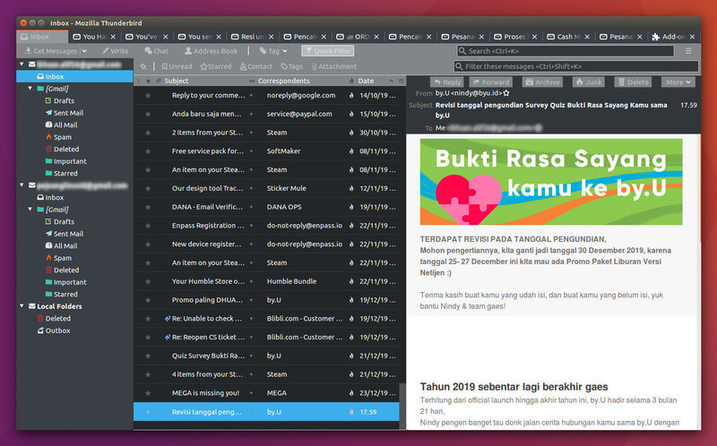 Untuk kalian yang menggunakan Ubuntu mestinya sudah cukup familiar dengan saingan Microsoft Outlook dan Apple Mail ini karena jadi aplikasi email yang disertakan out of the box di distro Linux turunan Debian tersebut.